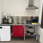 这家别墅配有冷冻机,咖啡壶/茶壶和厨具,可供住客自己做饭. 公共汽车站在旁边,仅有900米.